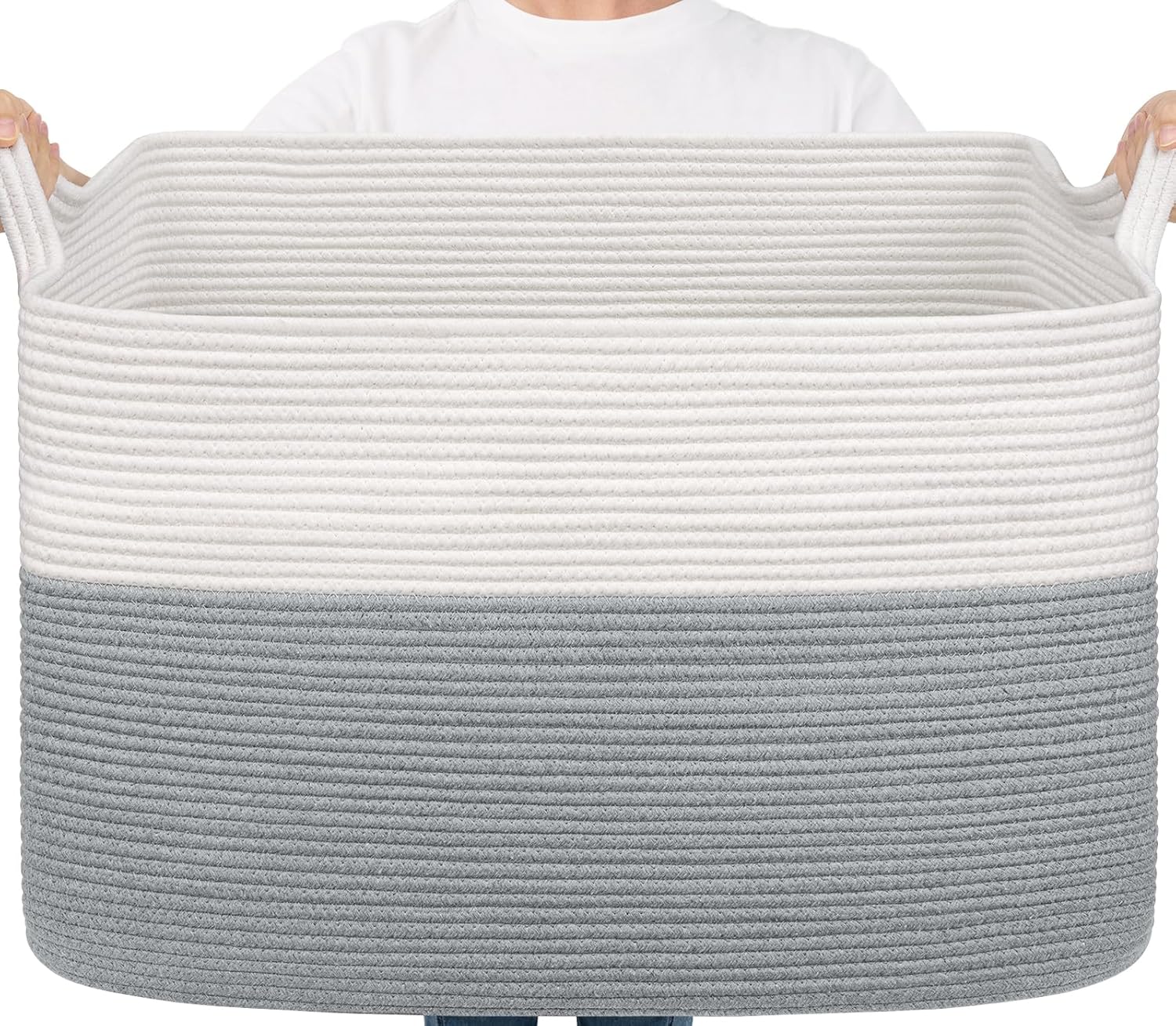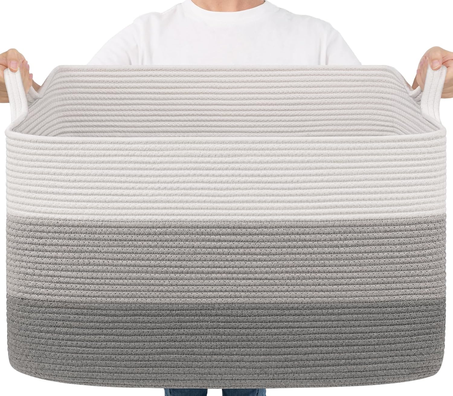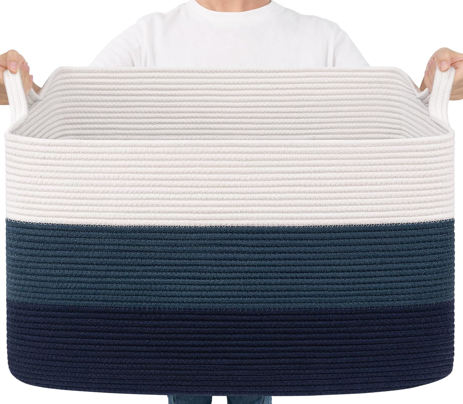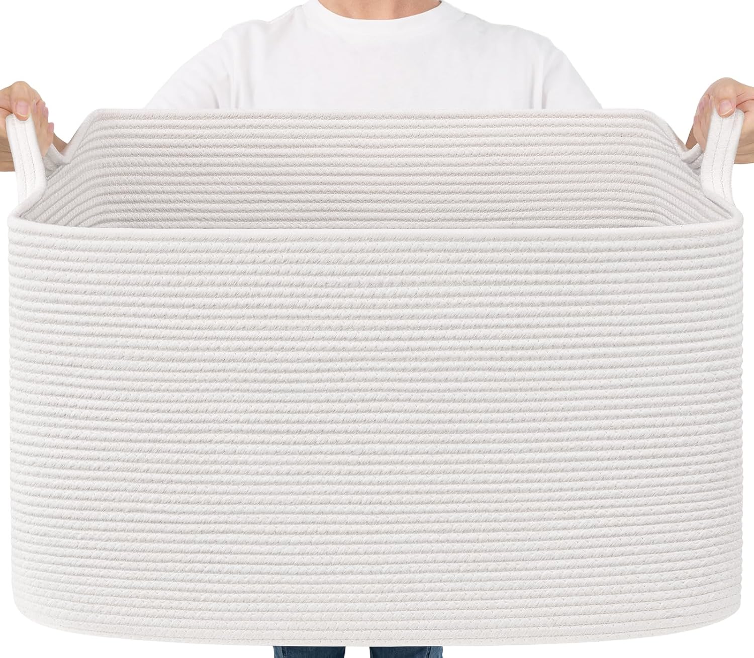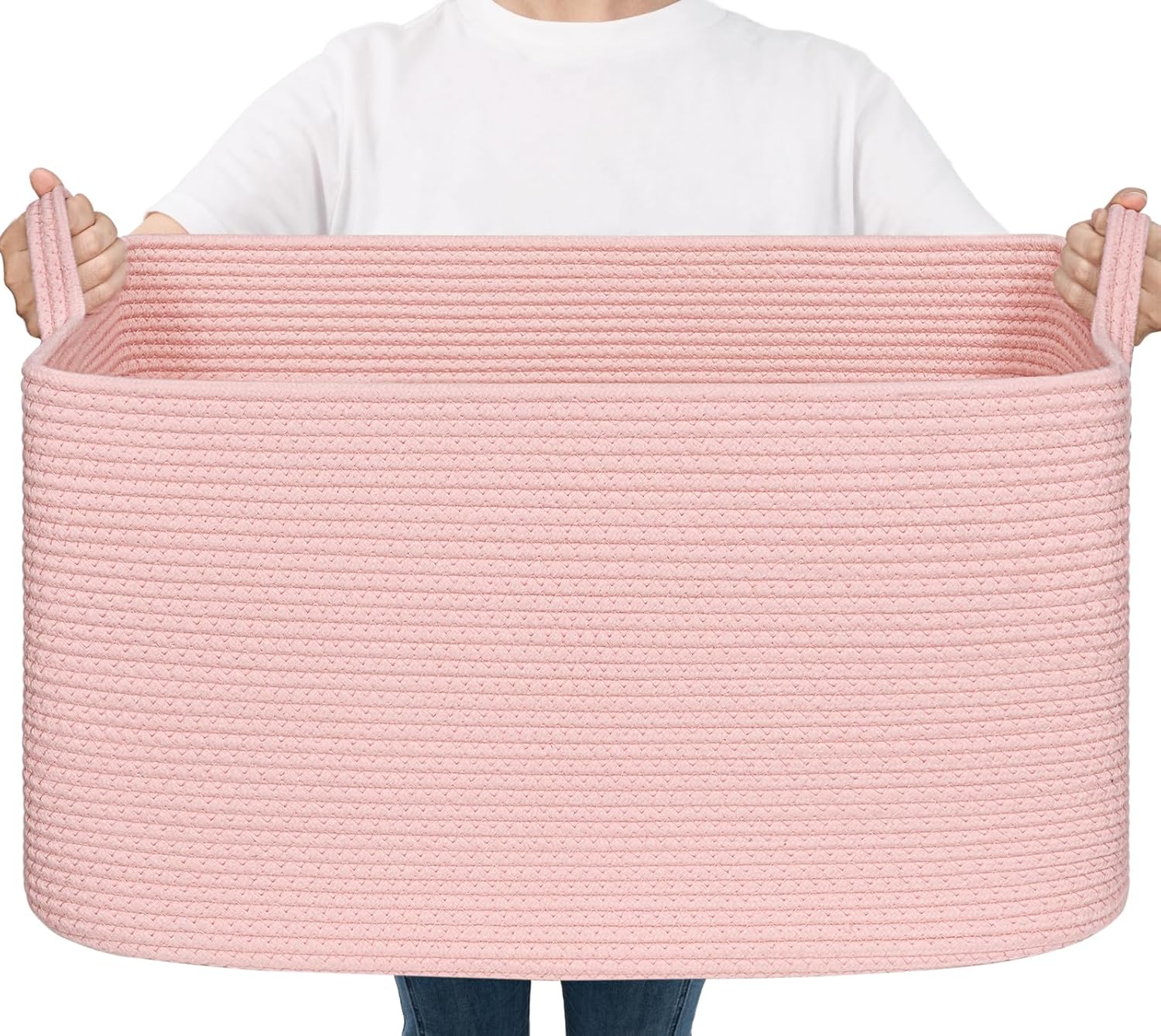 Rectangle Cotton Rope Organizer for Toy Storage - Material: Cotton - Size: 25 x 16 x 16 inches - Multiple Use: You can have the storage basket in nursery, living room, bedroom, bathroom or laundry room to hold your clothes, blankets, toys storage etc. - Machine Wash: You can put the basket in a laundry bag to wash it by machine or hand wash.