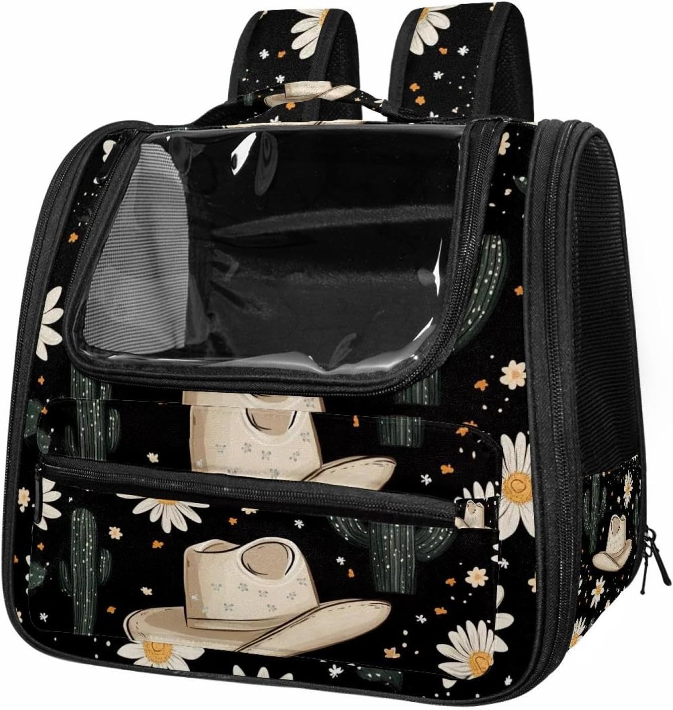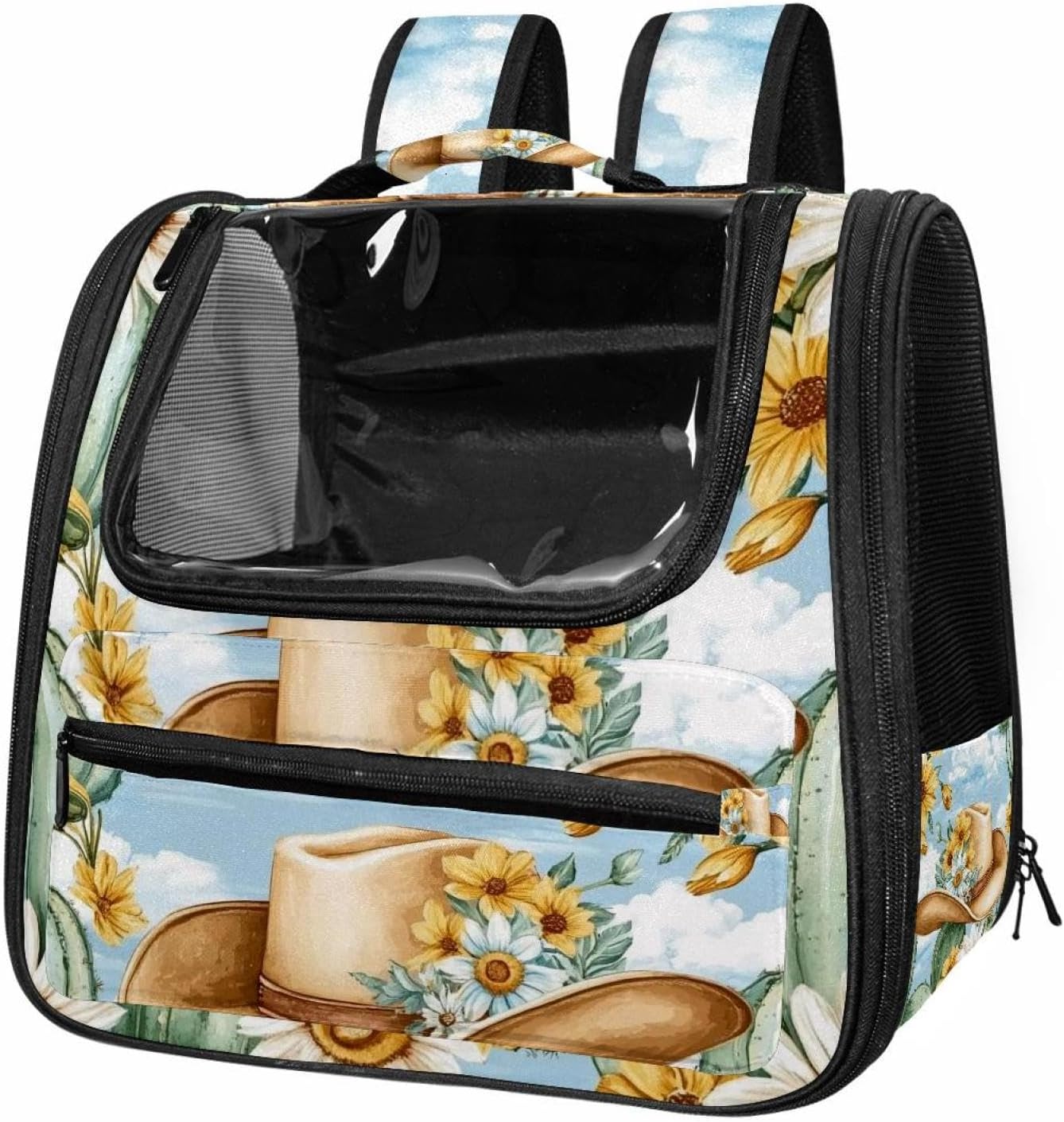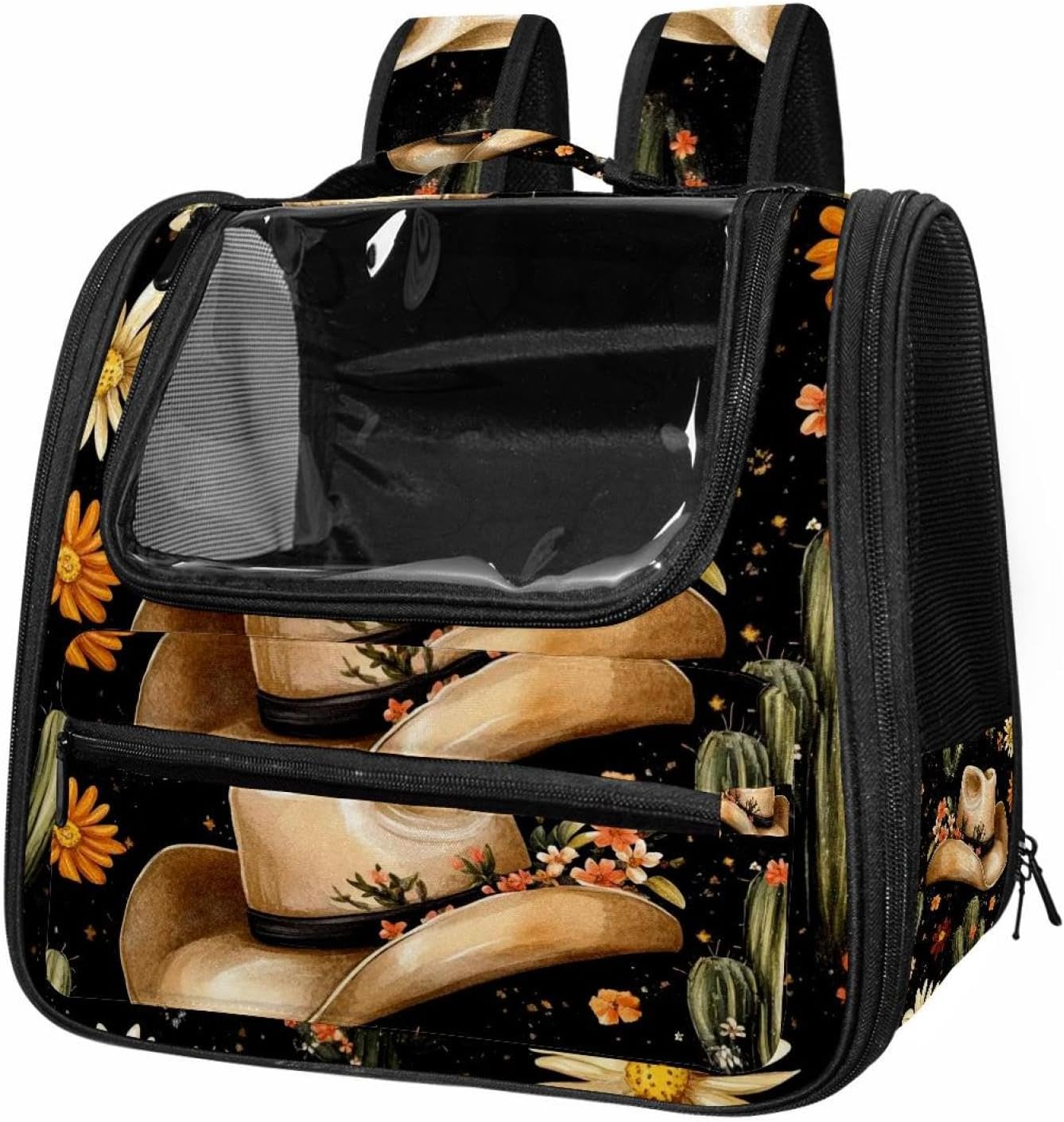 Well made: Cat Backpack Carrier is made from 900D oxford fabric, pp webbing, velvet, nylon, which is very sturdy, environmentally friendly and breathable. Not easily scratched by pet’s claws, pet backpack carrier is SAFETY & ANTI-SCRATCH. The back padding will give you a comfortable and breathable experience. Ventilated Backpack: With a breathable window in the front, this pet backpack allows cats to enjoy the sun without feeling stuffy. There are two side pockets and one big front pocket, and you can take foods or toy for your kitten pet. It is big enough for cat to turn around, and there are side pockets and hook holes, you will enjoy the greatest convenience when taking your cat out. Perfect size: Cat carrier is 15.75x9.84x13.78in/40x25x35cm. Fits most small/medium sized cat, dog, and pet. Quality fleece bed provide a comfortable place for your pet. Lightweight and easy to carry to all places. Built-in harnesses keep your naughty friends from escaping. Removable cosy mat for easier cleaning and let your pet enjoy it inside. Easy to carry: The adjustable shoulder strap of pet carrier bag help you hands-free carrying and makes it the most safe and convenient pet carrier bag for your travel. Seat belt design provide pets with safety protection throughout the trip. Pad protection keep your pets comfortable during travel. Unique Design: Innovative inside graphic design gives you a stereoscopic 3D visual experience. You also send us the photos you interest to make your unique dog or cat carrier. Pet bag is also a amazing gift for pet lover.